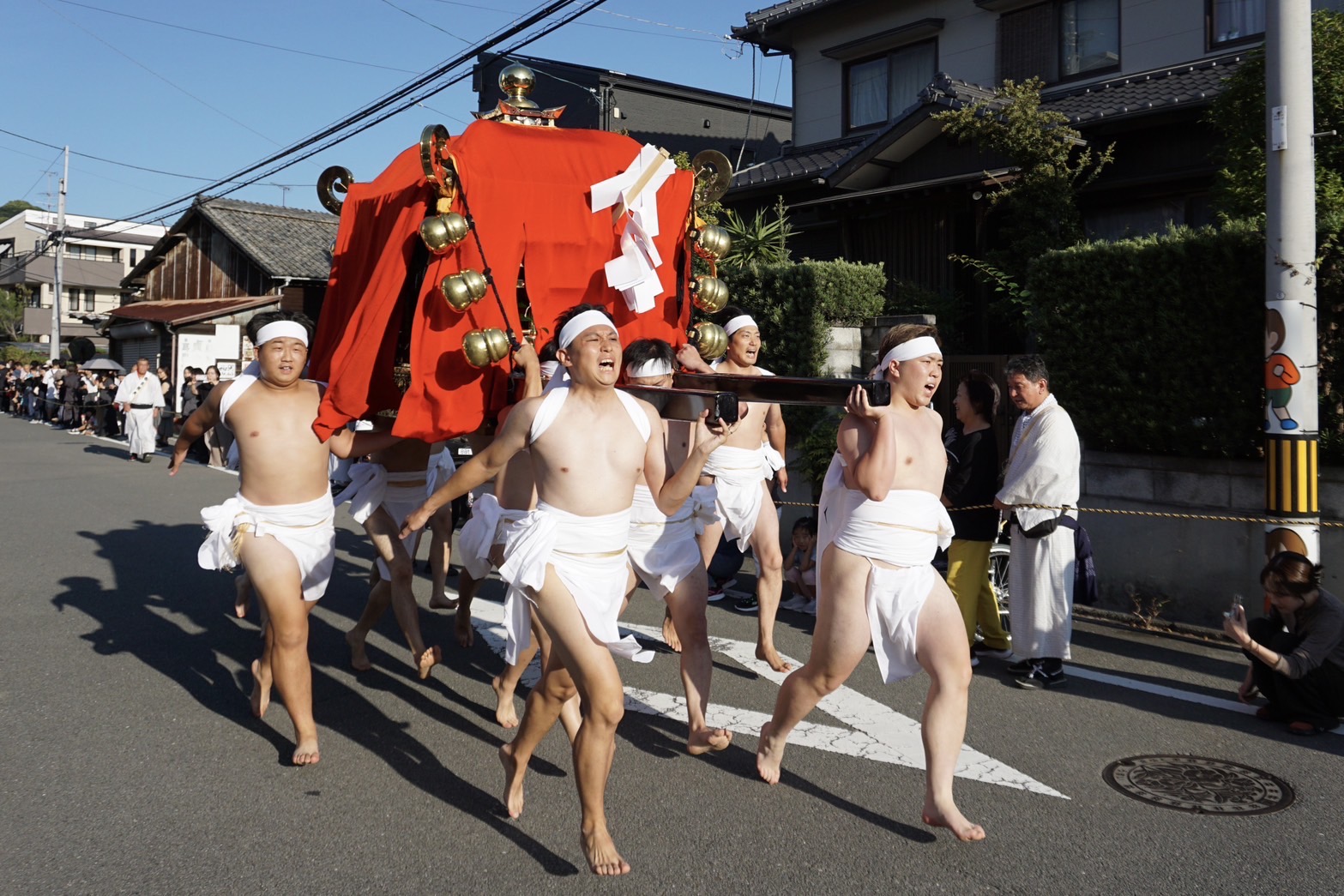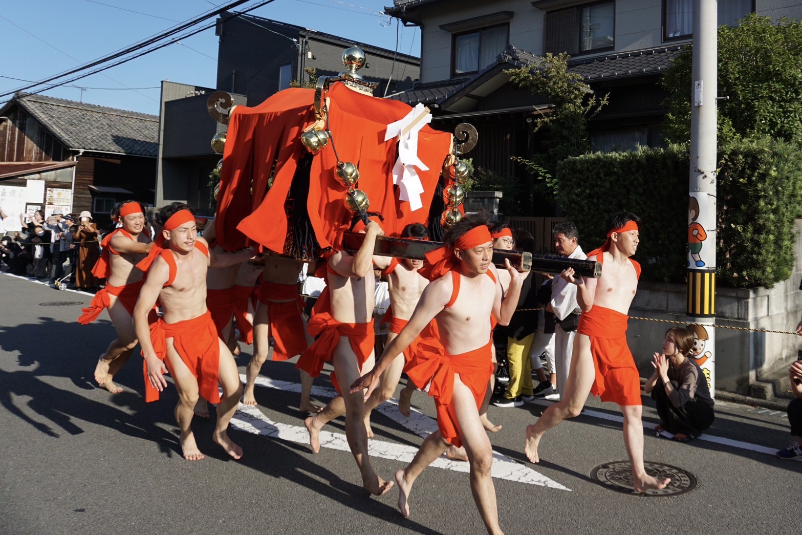 現在では、宮出し後、裸に鉢巻・襷・褌姿の神守(氏子各地区の青年約10人からなる担ぎ手)が、それぞれの神輿を担いで参道100m余りを疾走する神事として継承されています。このとき、神輿を上下左右に揺らさずに走ることが美しいとされており、7体の神輿はその美しさを競います。