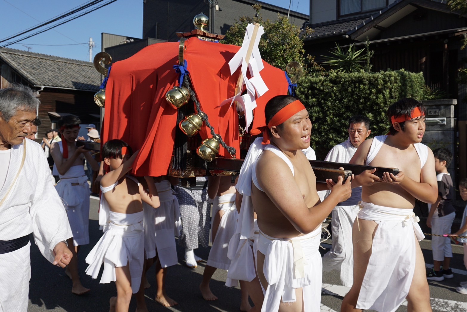 - 10月7日秋季大祭 「一体走り」「川狩り」御神体が神輿にお遷りになり、氏子地域を巡幸します。(6時宮出し・7時半一体走り)